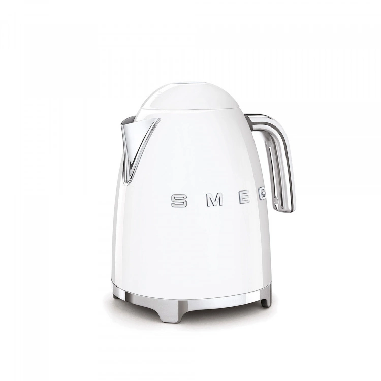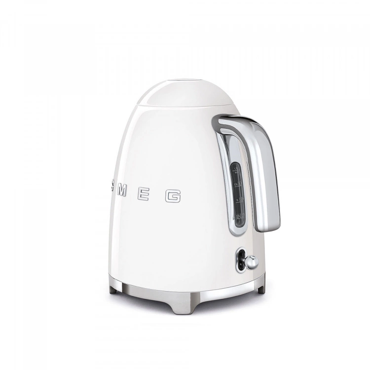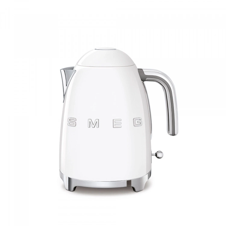 Smeg Vattenkokare Vit ingår i den populära retroserien med 50-talsstil formgiven av Matteo Bazzicalupo och Raffaella Mangiarotti från deepdesign för Smeg. Vattenkokaren är tillverkad i rostfritt stål, har ett handtag i krom och ett lock med push-öppning. Kannan har en volym på 1,7 liter och placeras på en 360º bottenplatta med inbyggd sladdvinda samt gummitassar som gör att den står stadigt. Smeg Vattenkokare Vit har ett löstagbart kalkfilter i rostfritt stål, dolt värmeelement samt automatisk avstängning vid 100º eller om vatten saknas. Smeg Vattenkokare finns i åtta olika färger.