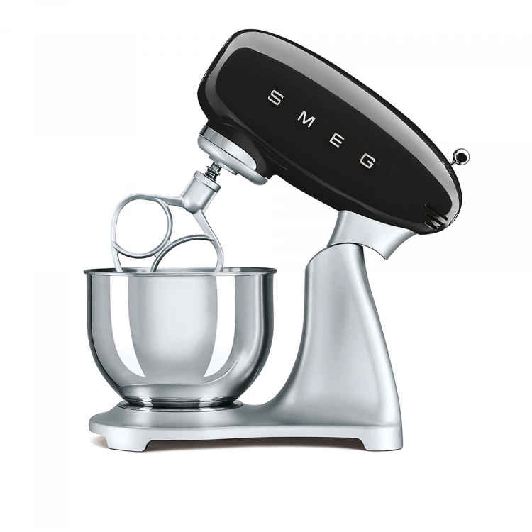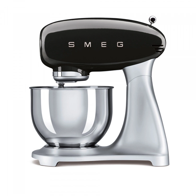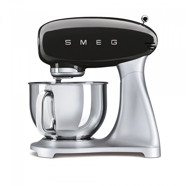 Smeg Köksmaskin Svart är en prisbelönt köksassistent som har kommit att bli en stilikon världen över. Köksmaskinen ingår i den populära retroserien med 50-talsstil från Smeg och är tillverkad i formpressad aluminium men en ergonomisk design. Den polerade bunken i rostfritt stål på 4,8 liter täcker de flesta användningsområden och är försedd med ett handtag som underlättar placering och borttagning. Smeg Köksmaskin Svart har tio hastigheter, planetär blandningsfunktion och ett säkerhetsstopp som utlöses när motorarmen lyfts eller vid överbelastning. Den har en inbyggd sladdvinda och gummitassar gör att maskinen står stadigt. Smeg Köksmaskin finns i sju olika färger. 5 års garanti gäller.