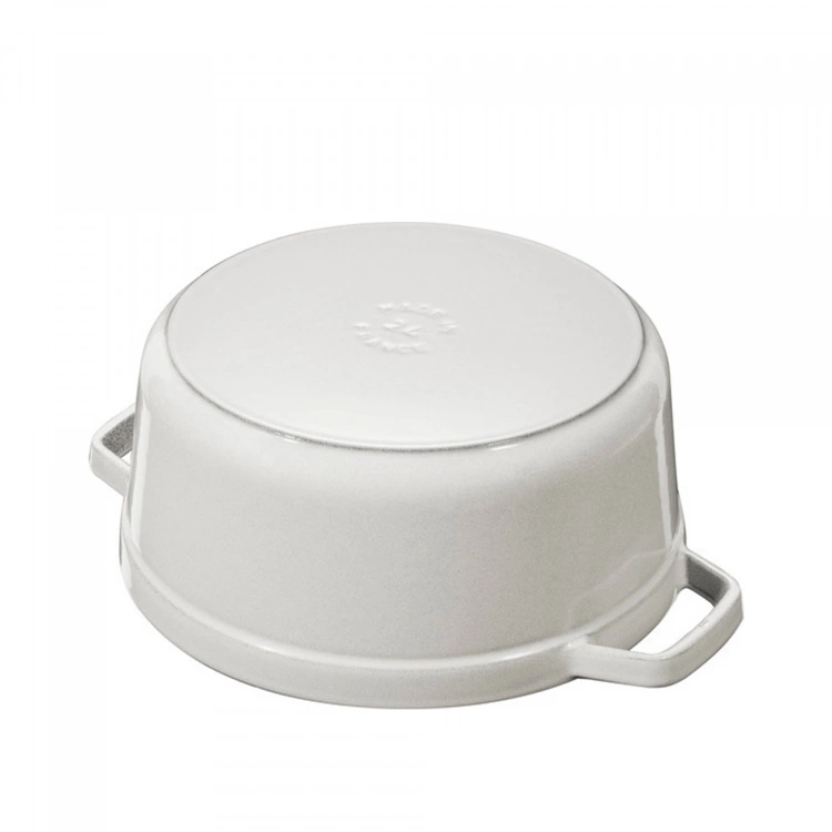La Cocotte Rund Gryta Ø 26 cm från det franska varumärket Staub är en gedigen gjutjärnsgryta. Denna ikoniska och världskända gryta är tillverkad för hand ur egen sandform av skickliga hantverkare. För att få fram den unika och praktiska grytan, genomgår den en tillverkningsprocess på mer än tjugo olika steg. Med grytan kommer ett tillhörande lock, som är en av Staubs hållbara och smarta innovationer. Locket är designat med små piggar fördelade över lockets undersida. När vätskan dunstar från grytan fungerar de små piggarna som ett självbevattningssystem, där en jämnt fördelad droppeffekt skapas och vätskan kan återigen bevaras i grytan.