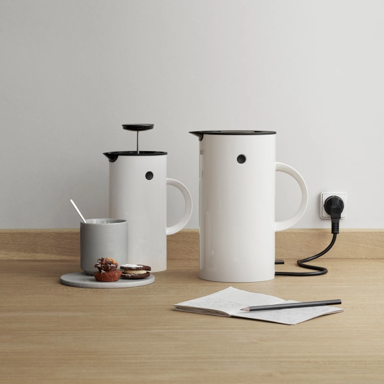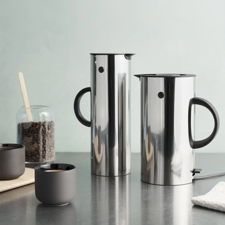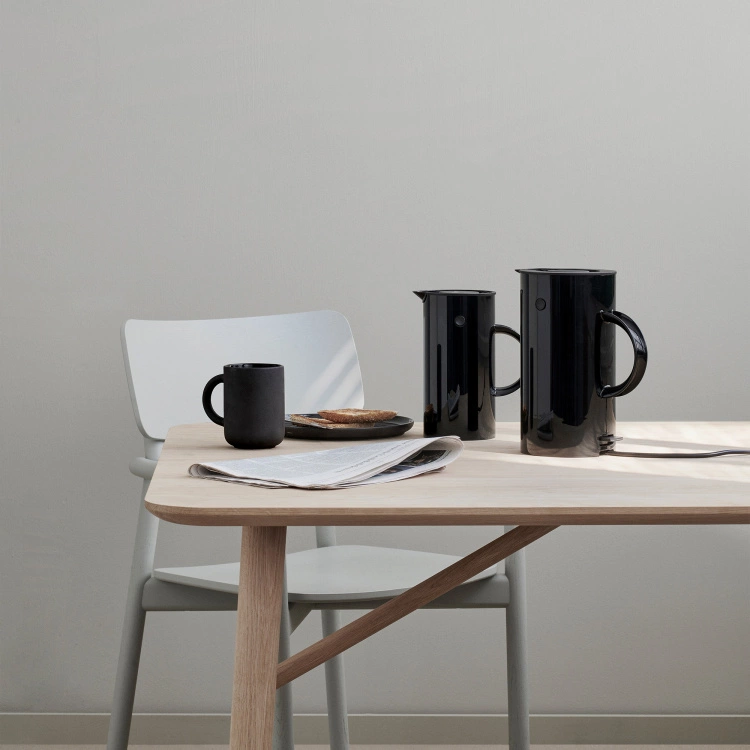 EM77 Electric Kettle 1,5 L är formgiven av Erik Magnussen för det danska varumärket Stelton. Vattenkokaren har samma ikoniska design som den uppskattade termoskannan, EM77 Vacuum Jug, som har prytt fikabord över hela världen i årtionden. Den cylinderformade vattenkokaren rymmer 1,5 liter, är utrustad med ett avtagbart kalkfilter, automatisk avstängning samt en säkerhetsbrytare för torrkokning. Välj mellan flera utföranden. EM77 Electric Kettle 1,5 L har en smart integrerad sladdförvaring och blir en praktisk liksom elegant del av köksutrustningen.