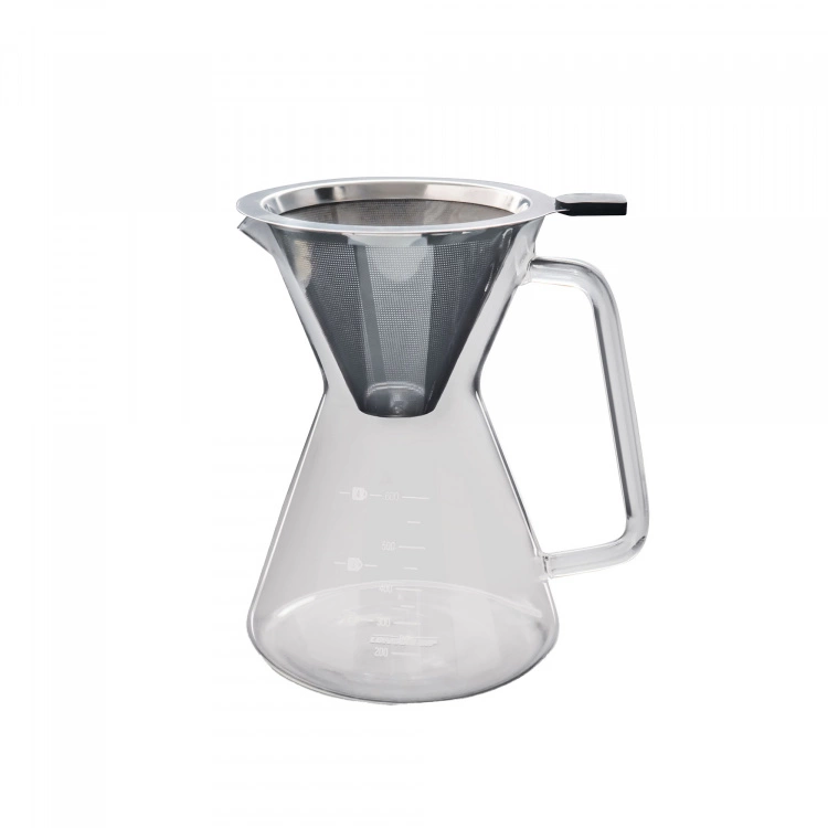 Pour-Over Coffee Maker – 4 Cups är designad av varumärket The London Sip. Den tidlösa kaffebryggaren är både stilren och funktionell. Karaffen är tillverkad i stöttåligt borosilikatglas, vilket är ett material som är särskilt bra på att tåla värme. Tack vare den eleganta pipen, de ergonomiska handtagen och måtten på karaffens sida är den enkel att använda. Med karaffen medföljer ett återanvändningsbart kaffefilter i rostfritt stål. Kaffebryggaren rymmer 600 ml, vilket motsvarar 4 koppar kaffe, men finns även att köpa hos oss i en större storlek som rymmer 1,2 liter, vilket motsvarar 8 koppar.
