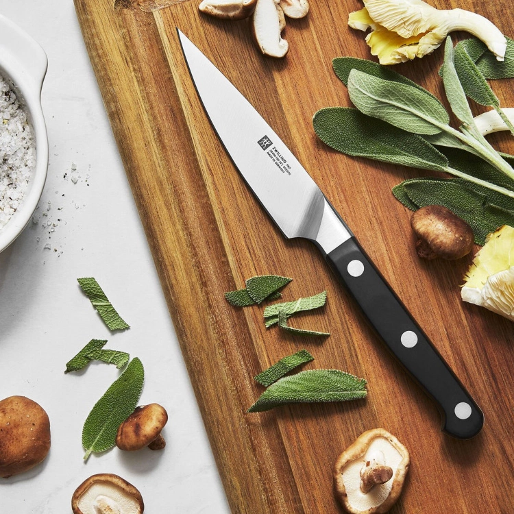 Från tyska varumärket Zwilling kommer Zwilling Pro Skalkniv 10 cm. Kniven är ett resultat av mer än 280 års erfarenhet av knivtillverkning och noggranna studier av hur knivar användas. Kniven passar utmärkt för rengöring, skalning och skärning av små frukter och grönsaker. Zwilling Pro Skalkniv 10 cm är mycket användarvänlig med dess unika knivform och ergonomiska styrka. En unik krökt bult stödjer det professionella nypgreppet, med tummen och pekfingret på bladet, för säker skärning och mindre trötthet. Bladets fulla längd kan användas vid skärning och kan skärpas från bult till spets.